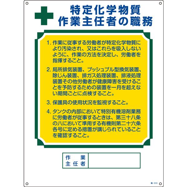 作業主任者の職務標識板 1 作業主任者の職務標識 特定化学物質 作業主任者の職務 職 513 049513 安全屋さん 通販 Yahoo ショッピング